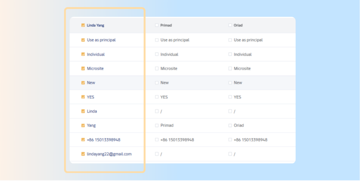 2. Compare records side by side and select the most accurate details to create a complete principal record.