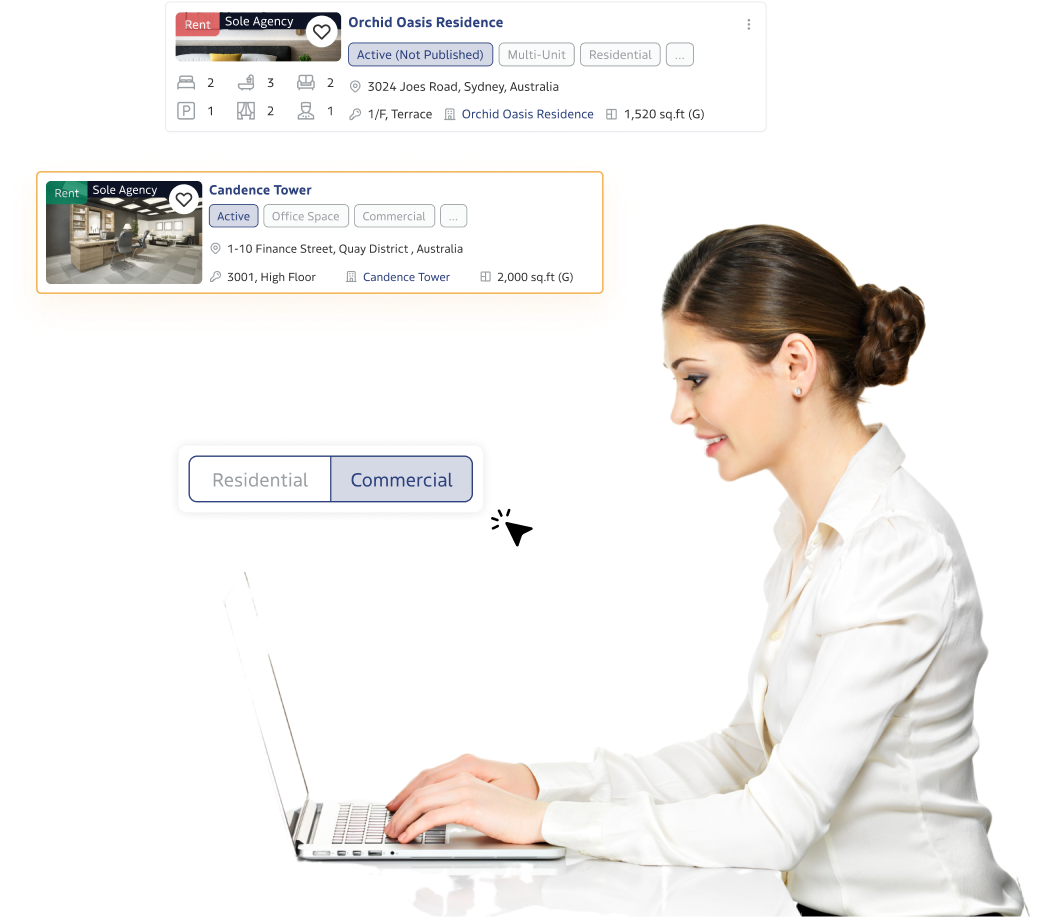 Jump between residential and commercial deals in a flick of a switch! Manage your clients and properties across both businesses, so that nothing ever slips through the cracks.