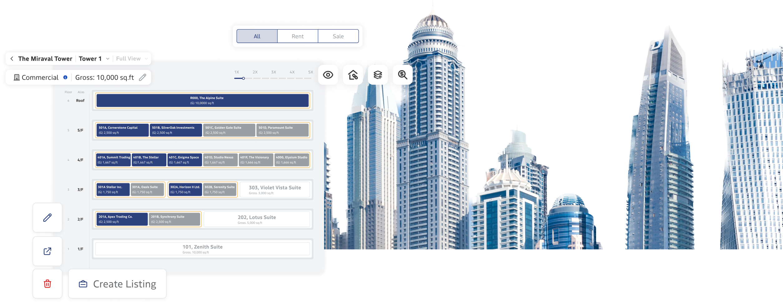 Get detailed insights into towers and units, and create listings directly from each property with ease.
