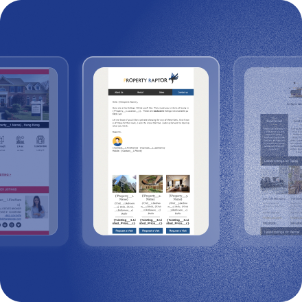 Generate view sheets, brochures, and WhatsApp campaigns effortlessly. Promote listings across portals and social channels with a single click.
